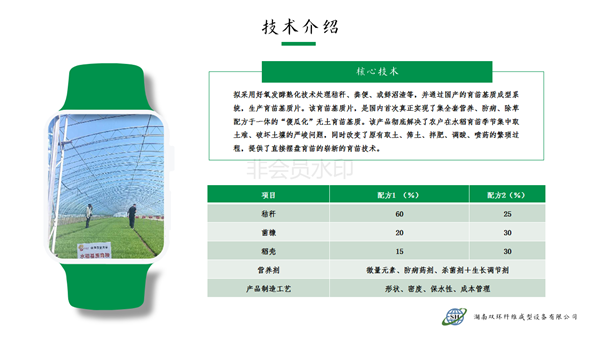 本產(chǎn)品針對水稻旱育苗大量挖取耕層土,耕層破壞嚴峻的現(xiàn)實,利用秸稈、蘑菇菌糠、稻殼、沼渣等農(nóng)林廢棄物經(jīng)過工廠化快速熟化,賦予全套的營養(yǎng)、防病、除草配方,制造成新型的嶄新的“無土育苗基質”。