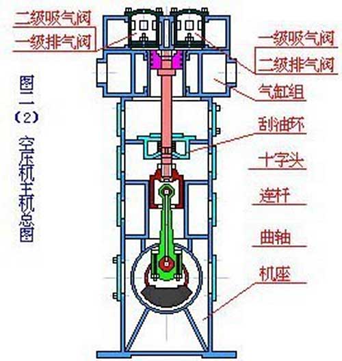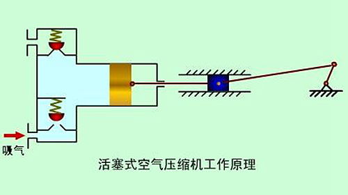 活塞式空氣壓縮機(jī)的工作原理:活塞式空壓機(jī)在氣缸內(nèi)作往復(fù)運(yùn)動(dòng)的活塞向右移動(dòng)時(shí),氣缸內(nèi)活塞左腔的壓力低于大氣壓力,吸氣閥開啟,外界空氣吸入缸內(nèi),這個(gè)過(guò)程稱為壓縮過(guò)程。當(dāng)缸內(nèi)壓力高于輸出空氣管道內(nèi)壓力后,排氣閥打開。活塞的往復(fù)運(yùn)動(dòng)是由電動(dòng)機(jī)帶動(dòng)的曲柄滑塊機(jī)構(gòu)形成的。曲柄的旋運(yùn)動(dòng)轉(zhuǎn)換為滑動(dòng)--活塞的往復(fù)運(yùn)動(dòng)。這種結(jié)構(gòu)的壓縮機(jī)在排氣過(guò)程結(jié)束時(shí)總有剩余容積存在。在下一次吸氣時(shí),剩余容積內(nèi)的壓縮空氣會(huì)膨脹,從而減少了吸入的空氣量,降低了效率,增加了壓縮功。